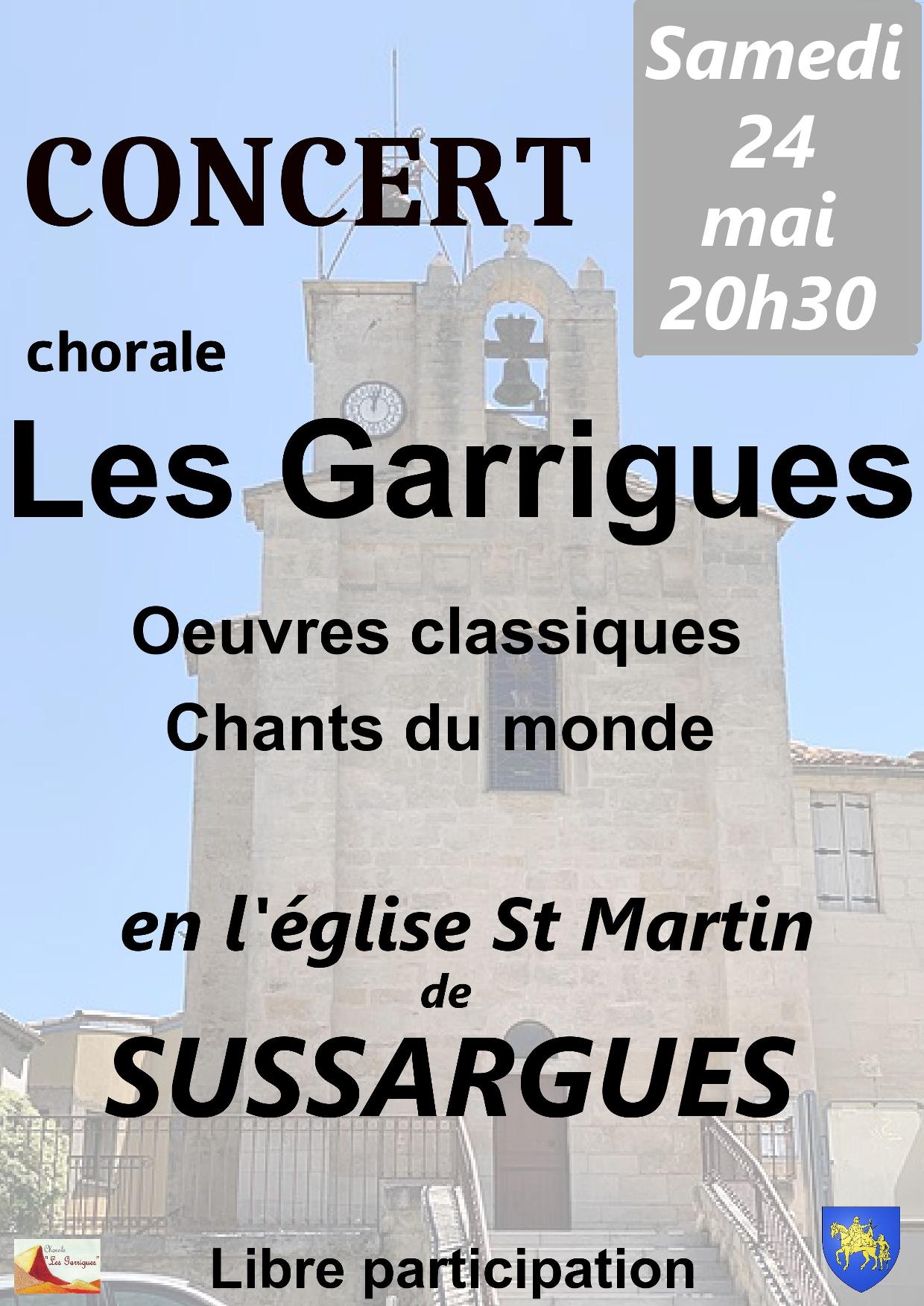 Concert de la chorale Les Garrigues en l'église de Sussargues le samedi 24 mai à 20h30