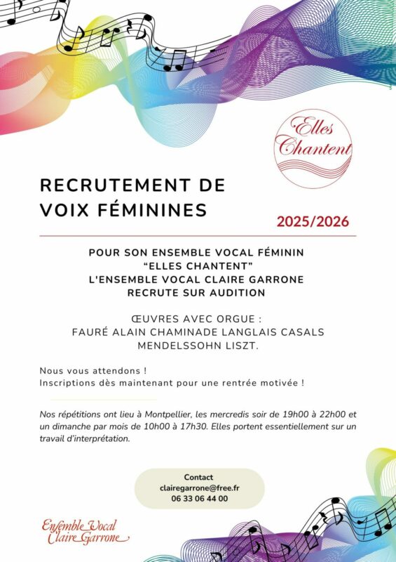 2025-2026 Nous recherchons des chanteuses qui auraient envie d'intégrer un groupe de joyeuses et pétillantes choristes !! Expérience en polyphonie…